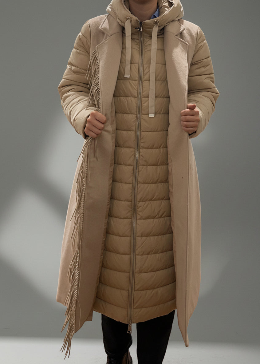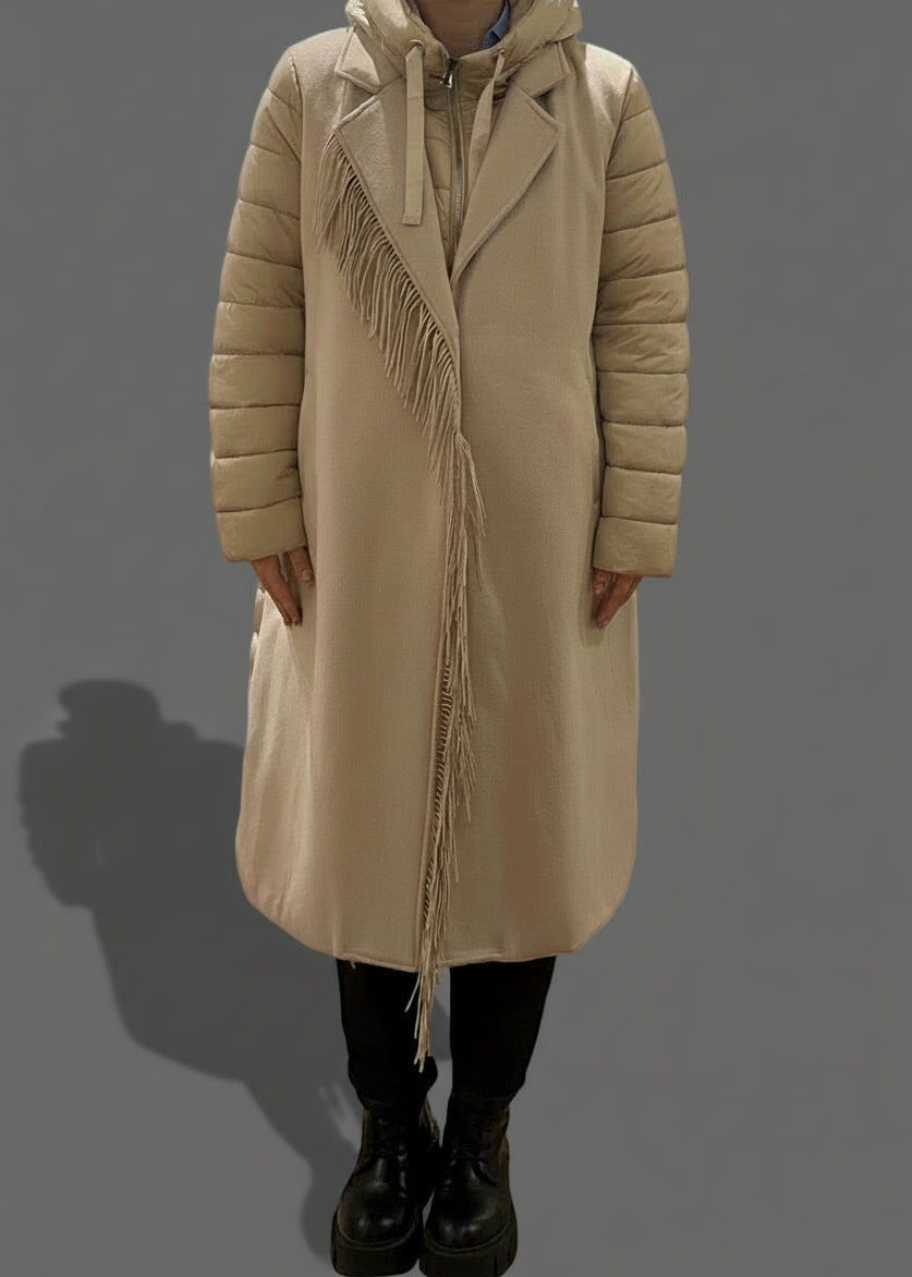 PLAŠČ Z RESICAMI BEŽ